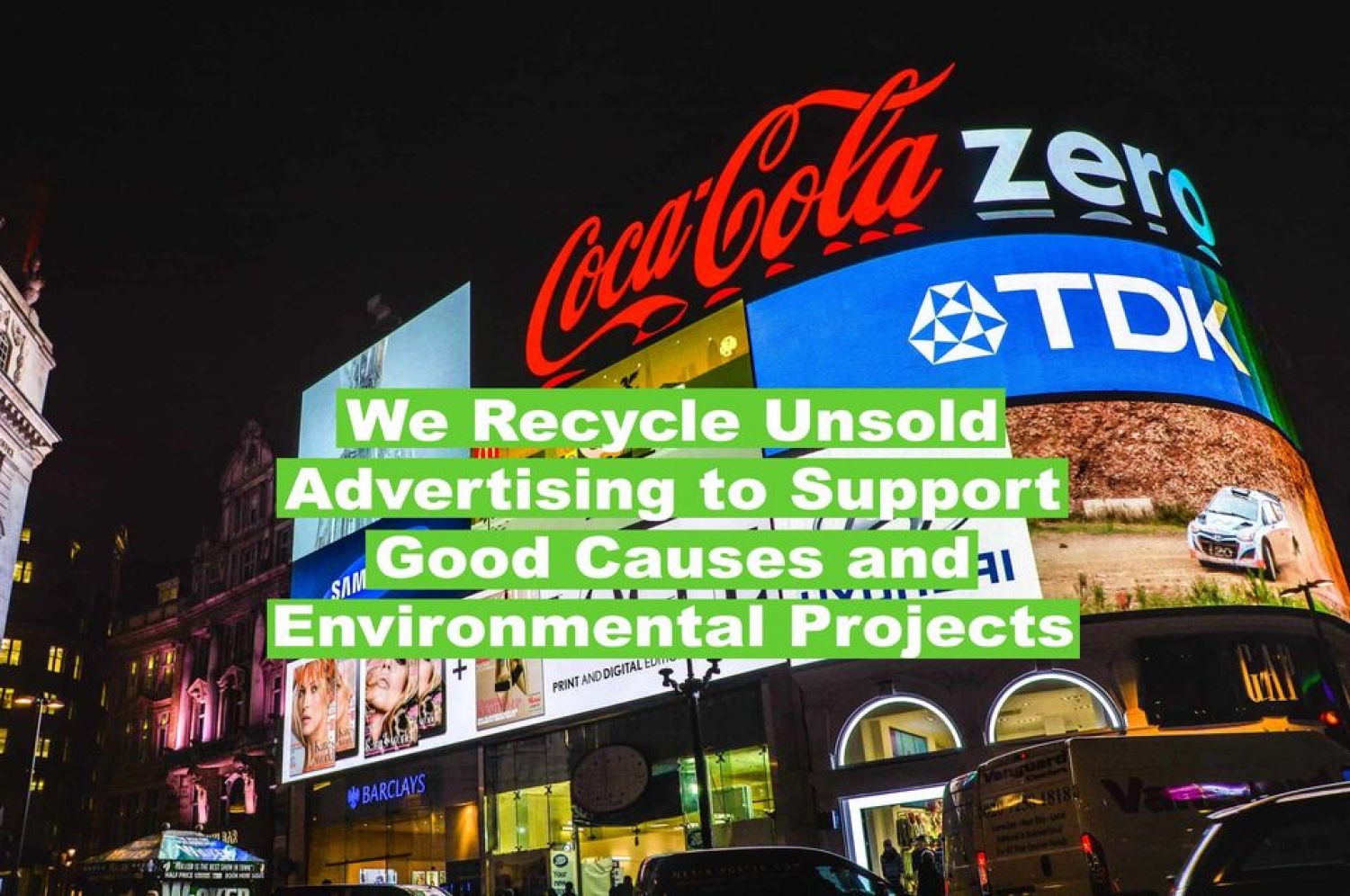 Our mission is to support community and environmental causes by unlocking the value in unsold advertising and by letting organisations purchase advertising with their own unsold inventory or spare capacity instead of cash.